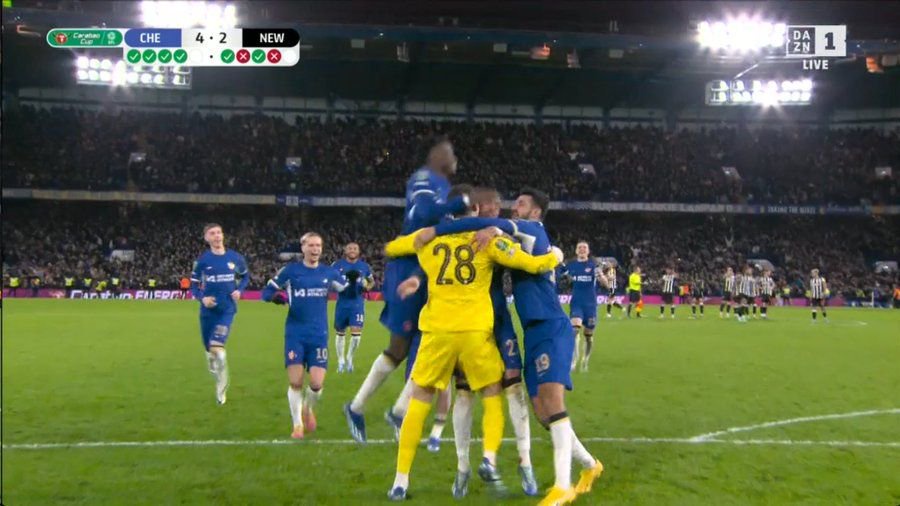 In the end the Blues just had to keep scoring after Kieran Tripper missed the goal entirely. But Djordje Petrovic made the difference with a superb full length stop to his left to deny Matt Ritchie.