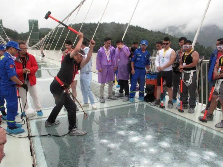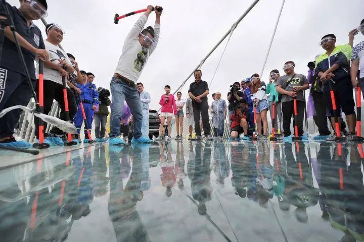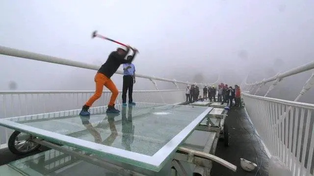 There’s this video that shows a guy with a big hammer trying to smash the glass, like a real-life superhero testing the bridge’s strength. Guess what? The bridge stood strong, no cracks, no shattering – just pure toughness.