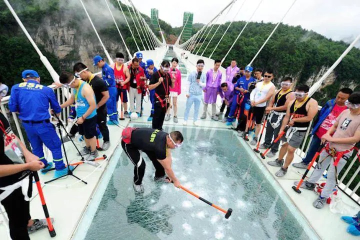 Now, people weren’t entirely sold on the idea of walking on a glass bridge. They were worried it might just give way under their feet. But, hey, China had a plan to prove them wrong.